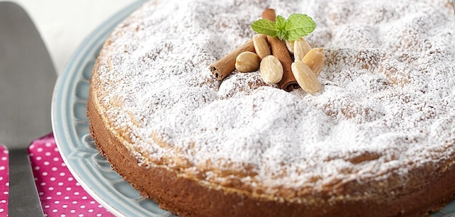 Desenforme e depois de frio corte o bolo em fatias, que devem ser passadas pelo açúcar em pó.