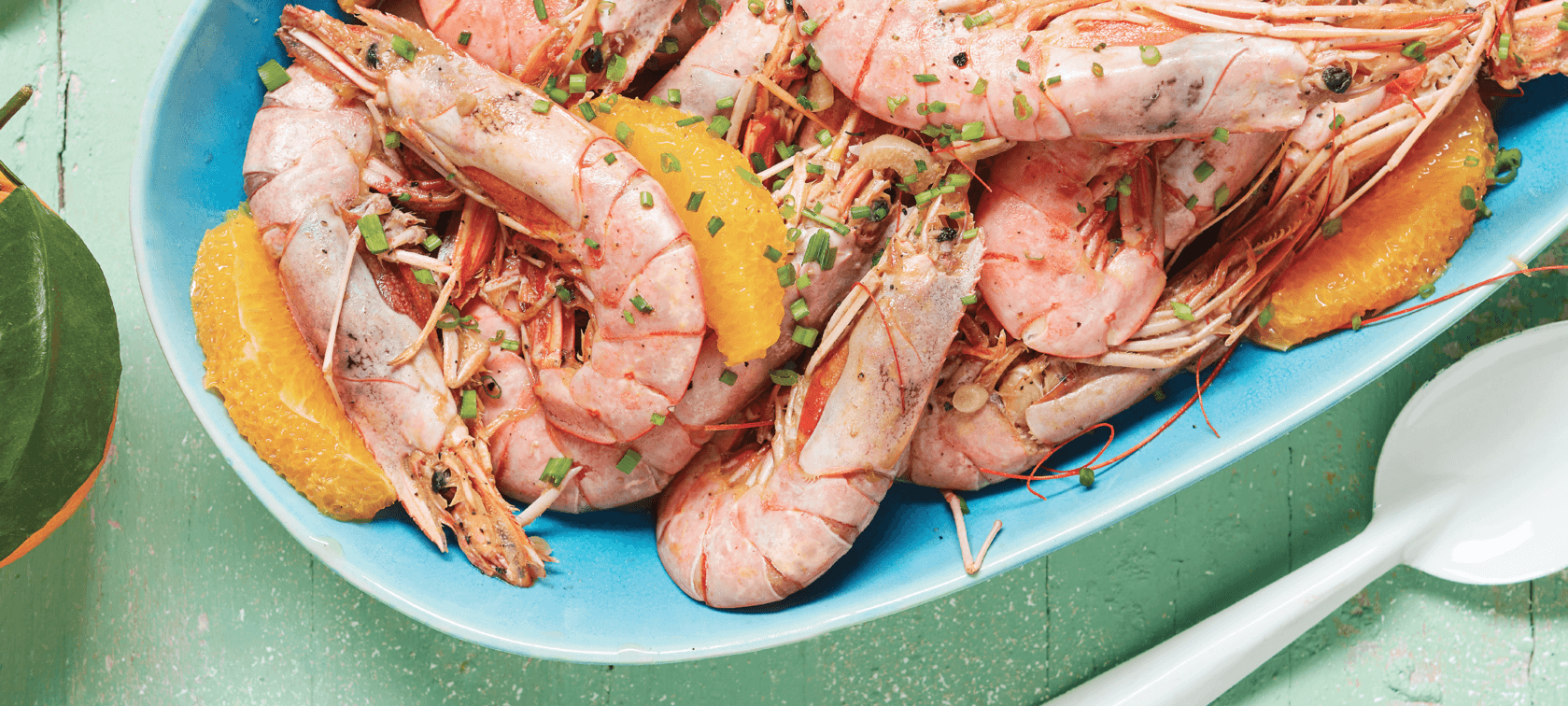 Sirva os camarões com gomos bem finos da laranja que sobrou.