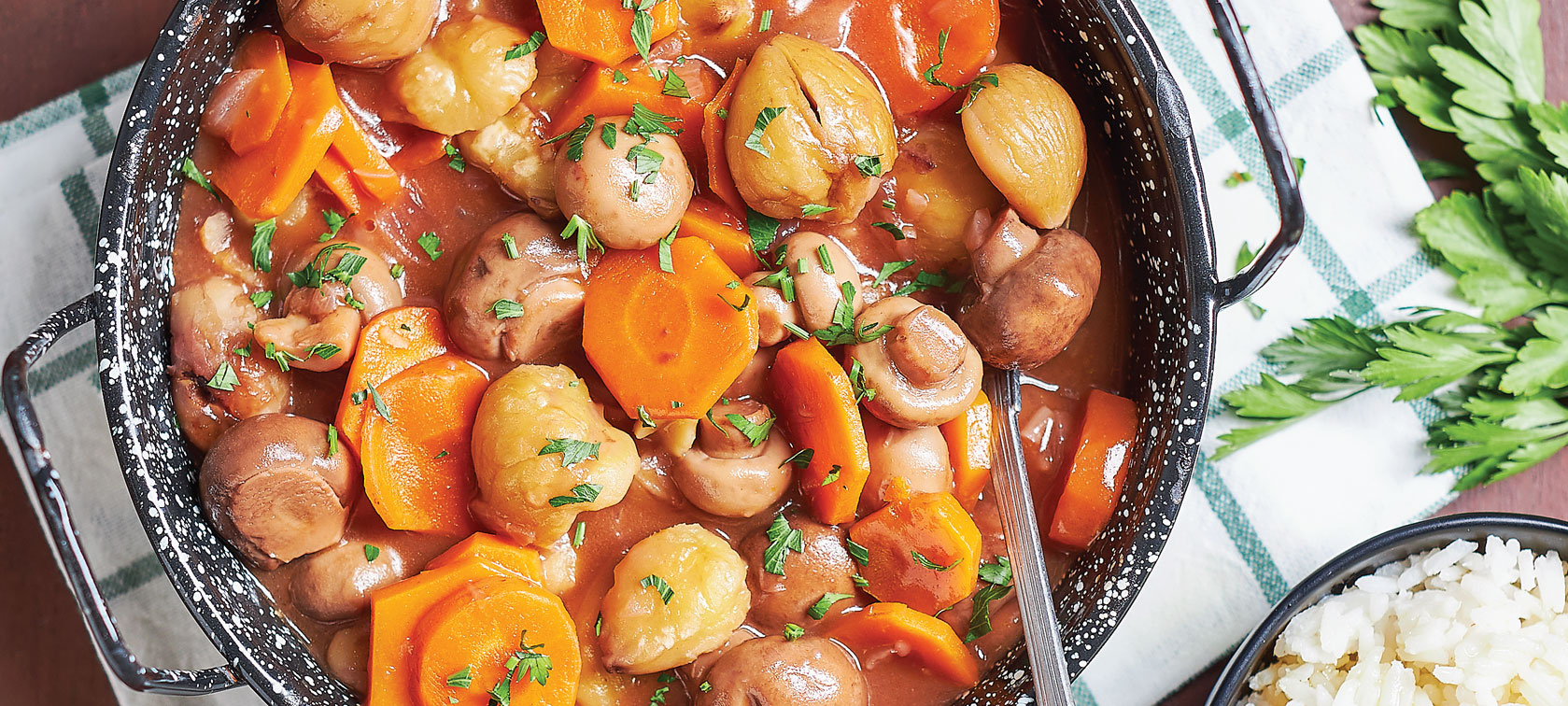 Acrescente os alhos e a salva picados e as castanhas picadas grosseiramente e deixe cozinhar por mais 5 minutos.
