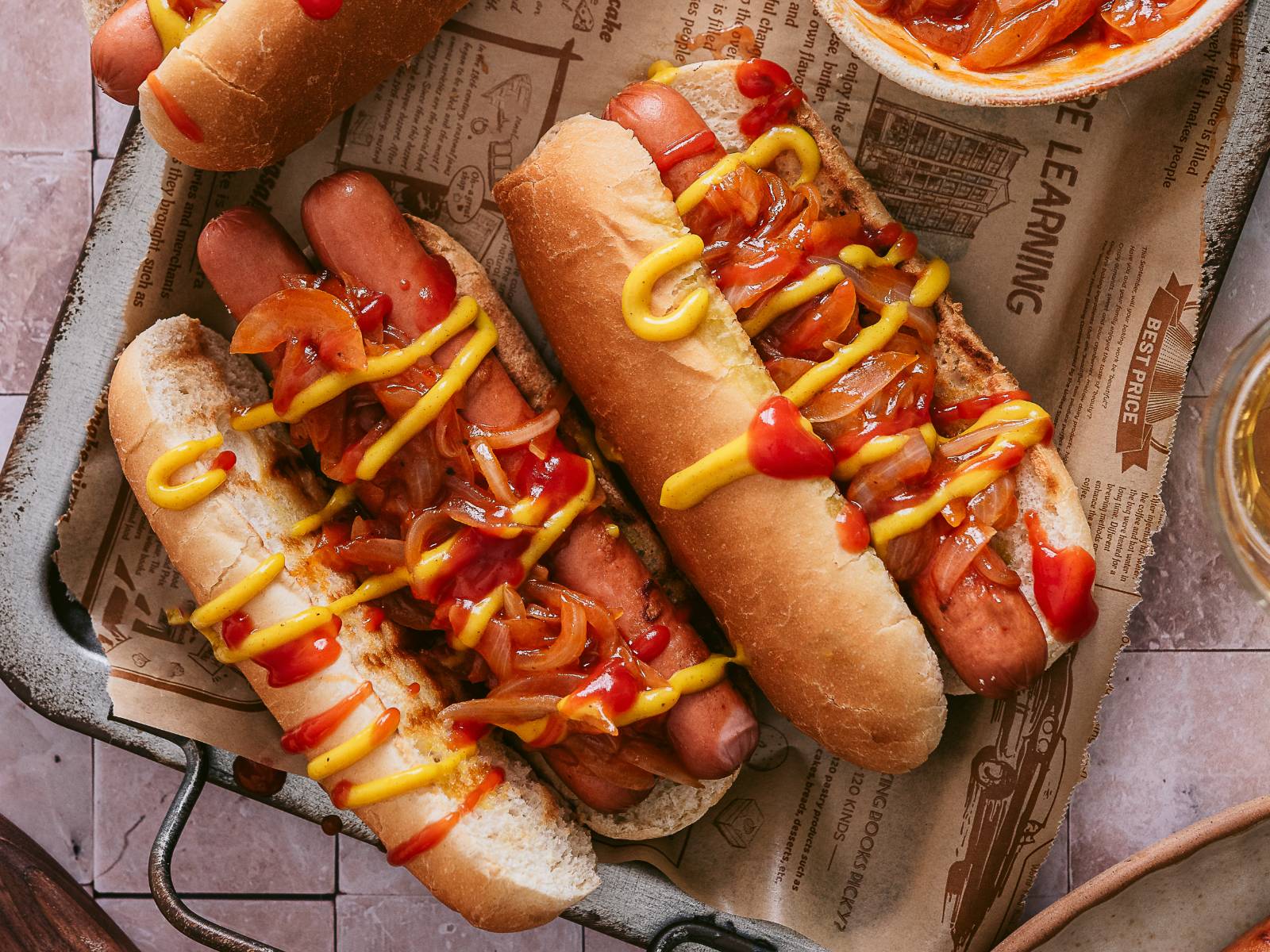 Sirva as múmias de salsicha e decore os olhos com molho de mostarda.