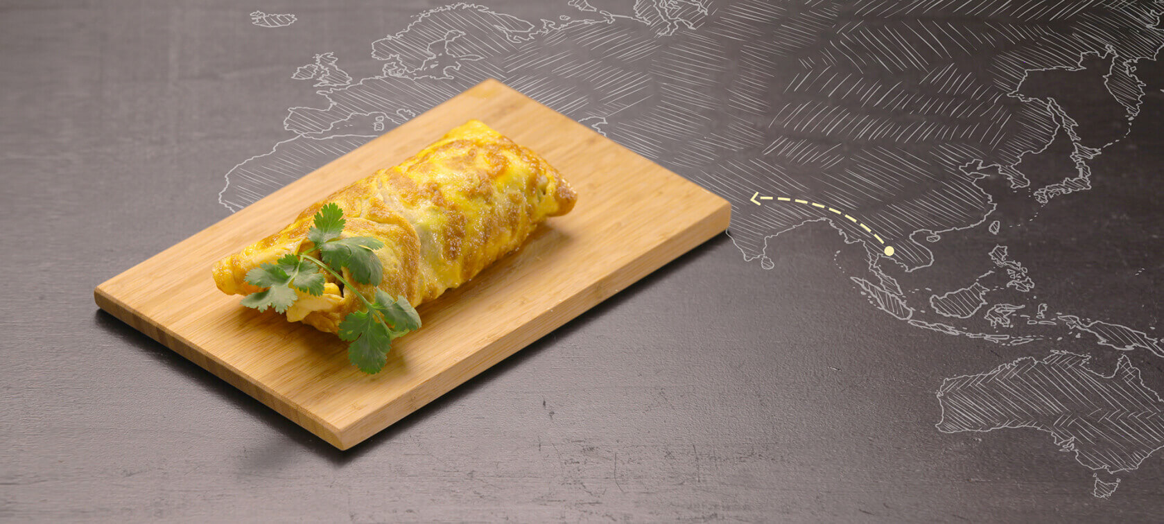 Rechear a omelete com a mistura de carne, enrolar e fechar dos lados.