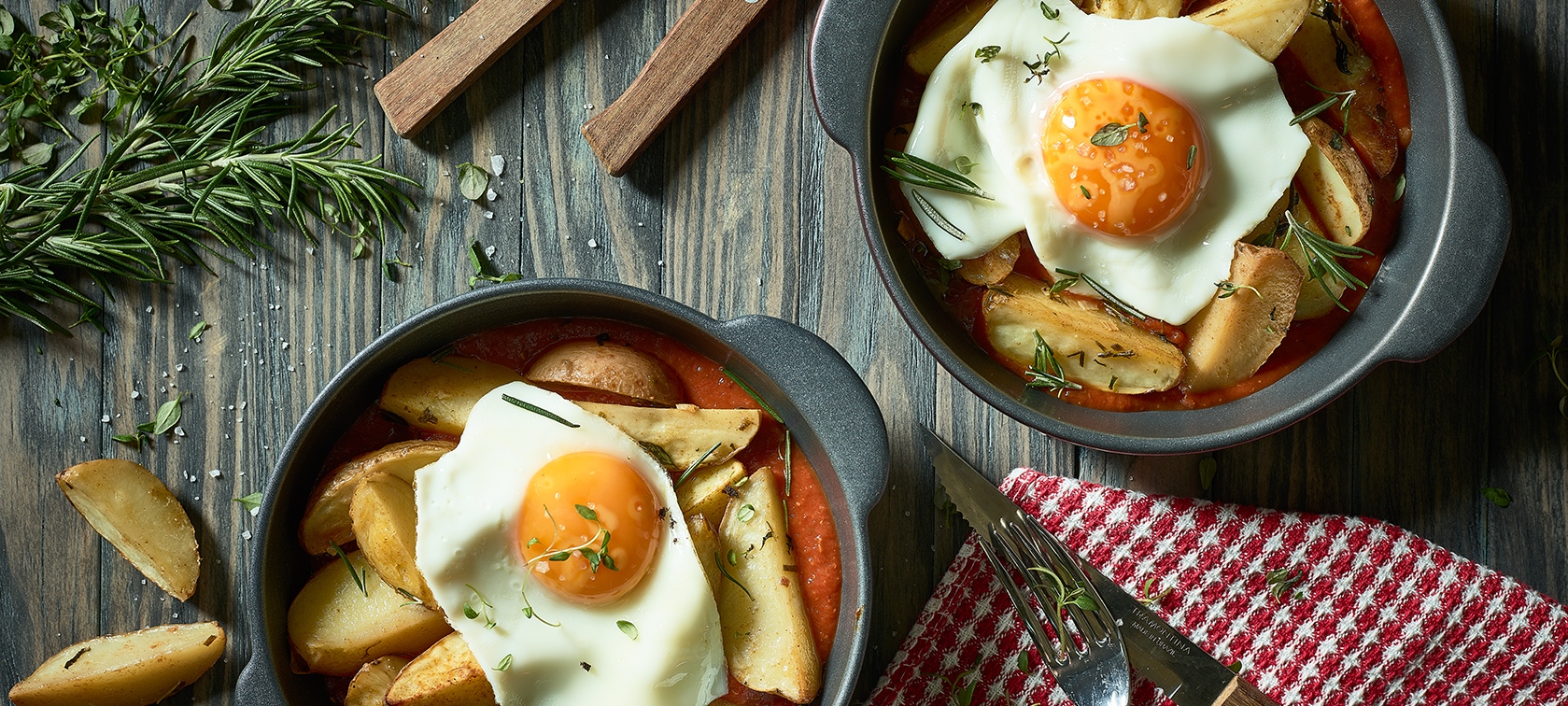Transfira a mistura anterior para um tabuleiro de forno, espalhando-a para cobrir o fundo. Disponha por cima uma cama de puré e polvilhe com o queijo ralado. Pincele com o ovo batido e leve ao forno pré-aquecido a 200ºC por cerca de 10 minutos.