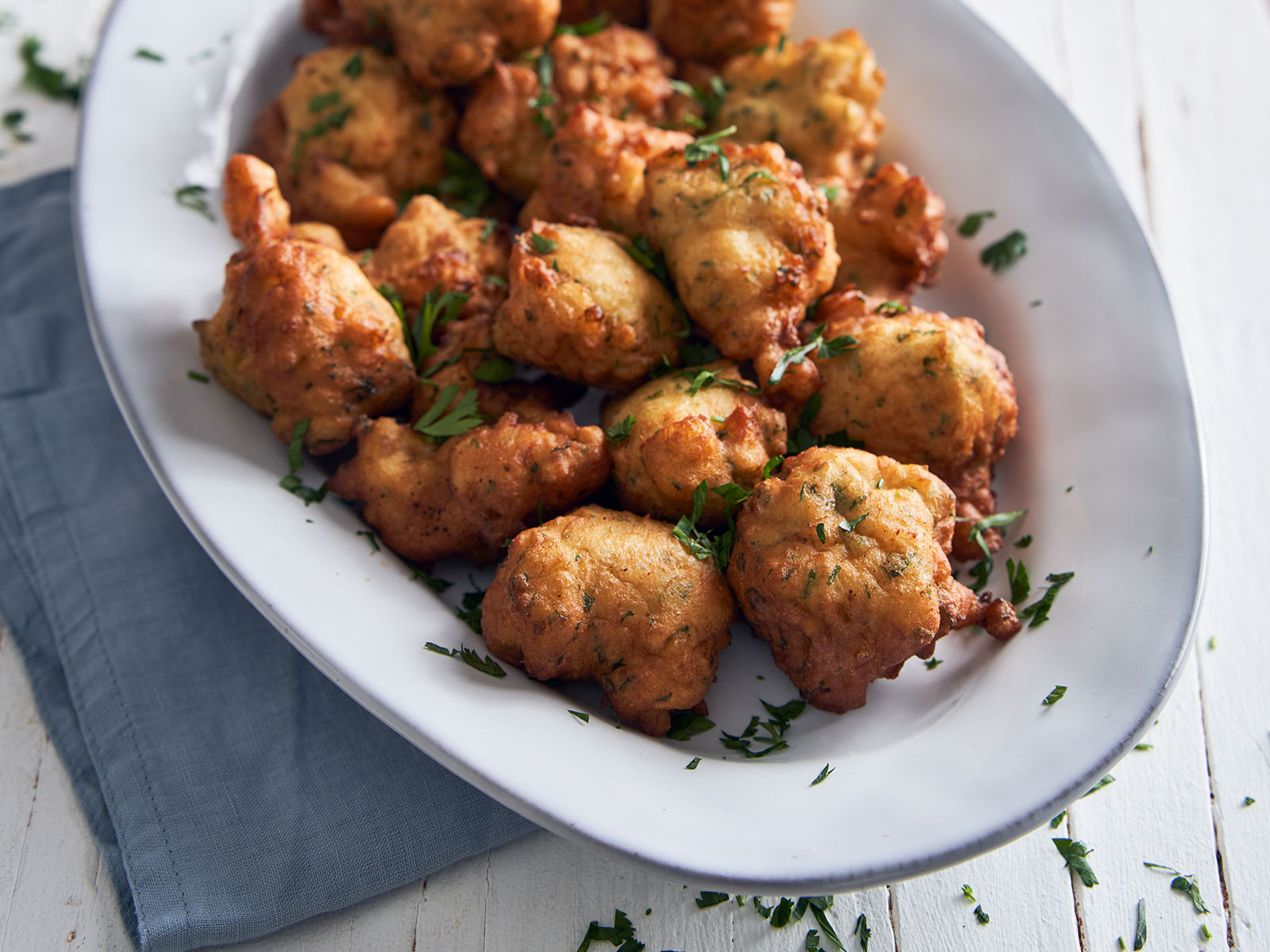 Tempere com sal e misture tudo muito bem e depois junte o bacalhau partido em pedaços.