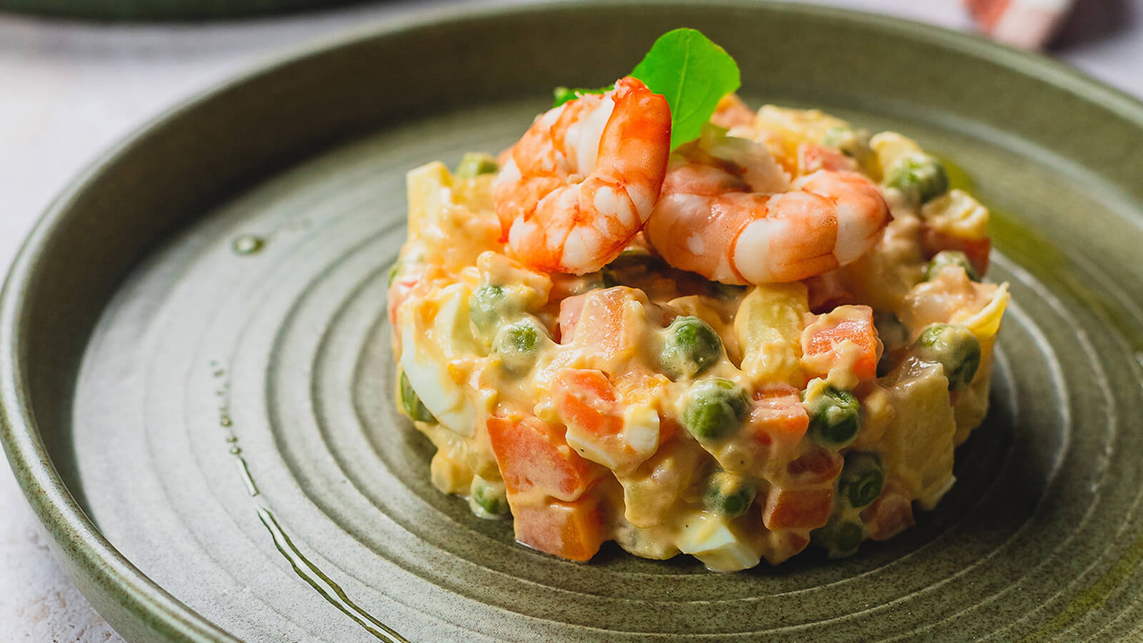 Deixe a salada russa no frigorífico por pelo menos uma hora antes de servir.