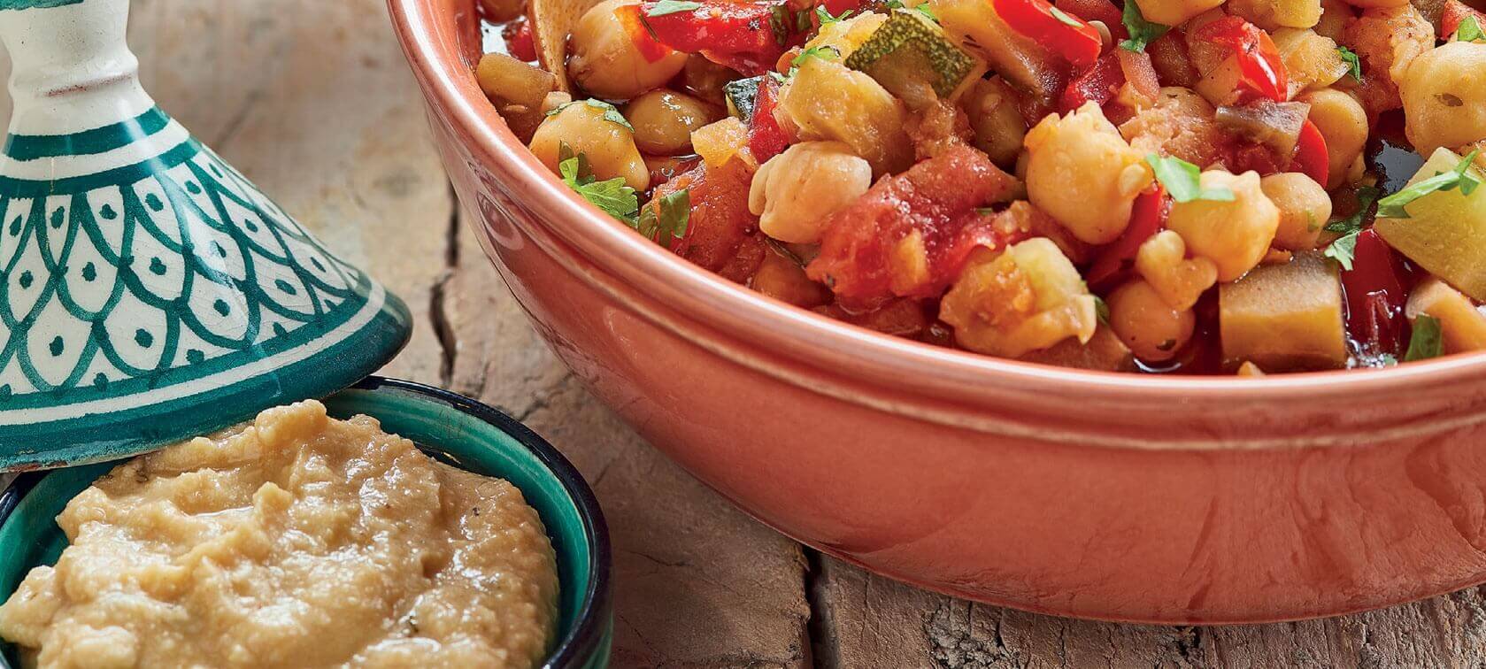 Acrescente a farinha, os cominhos, pimenta, harissa e sal e triture mais um pouco.