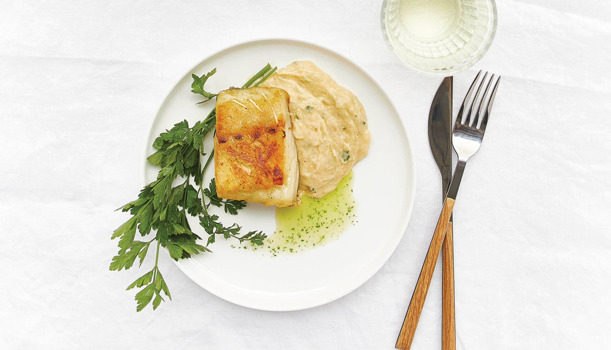 Insira o misturador sobre a lâmina. Escorra bem o bacalhau e adicione‑o ao preparado do copo. Junte uma pitada de sal (se necessário) e programe 7 minutos, a 100ºC, na Rotação Inversa, na velocidade 2.