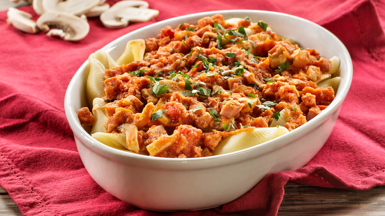 Retire a gordura da carne e corte‑a em cubos pequenos. Insira no copo a cebola e o tomate aos pedaços, os dentes de alho e o azeite e pressione 2‑3 vezes a Função Triturar, fazendo descer com a espátula o que ficou acumulado nas paredes do copo depois de cada ciclo de trituração. De seguida, programe 5 minutos, a 120ºC, na velocidade 2.