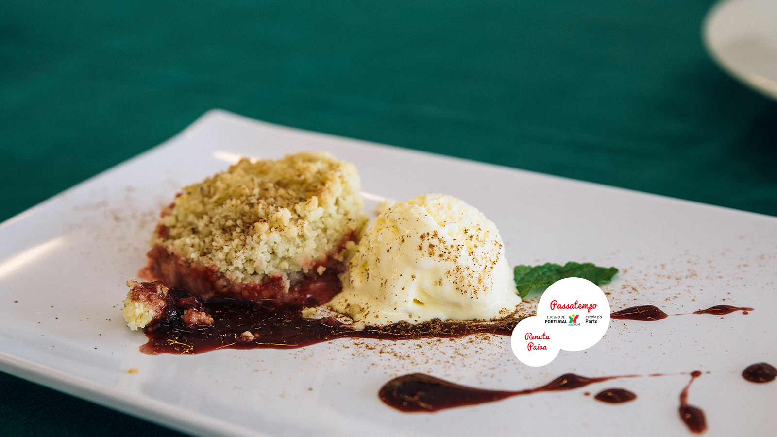 Retire o gengibre e a vagem de baunilha e sirva as farófias com a redução de vinho do Porto.