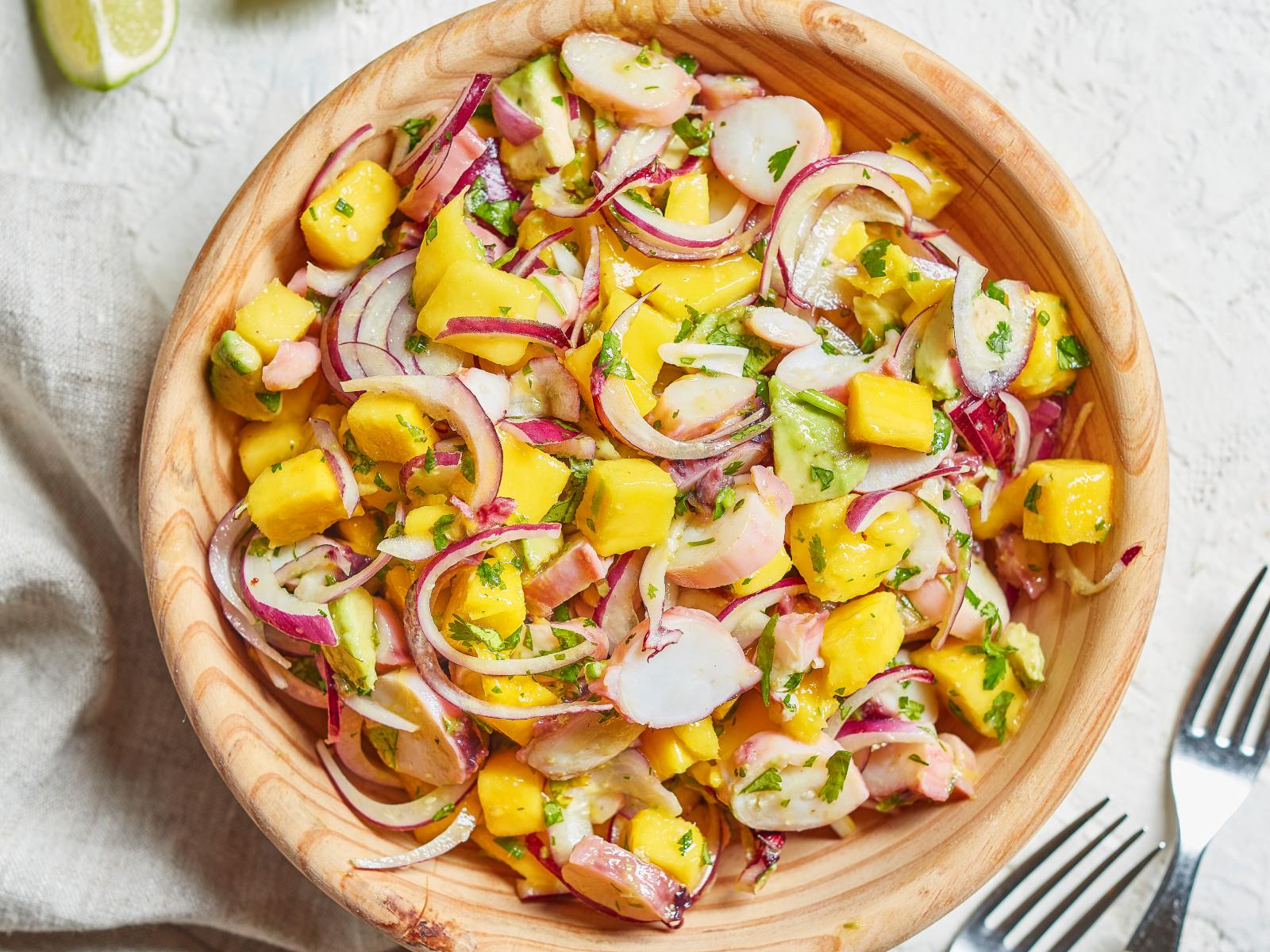 Salada de Polvo com Abacate e Manga